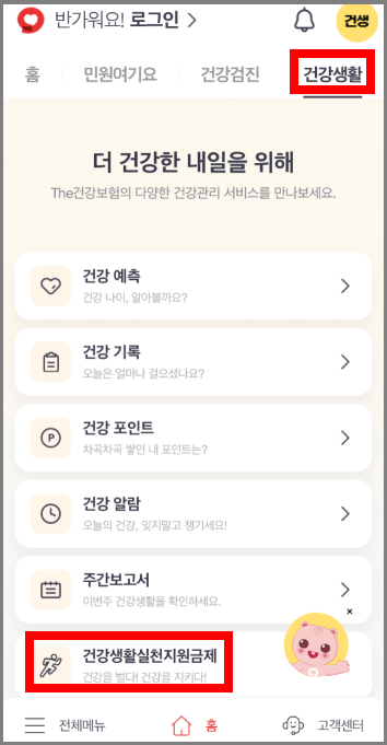 2. 상단 '건강생활' 메뉴 클릭