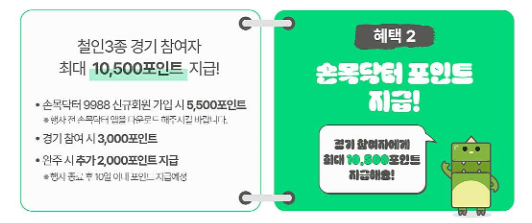 3. 손목닥터 9988 포인트 최대 10,500점 지급 합니다. (신규가입 5,000 + 경기참여 3,000 + 완주2,000)