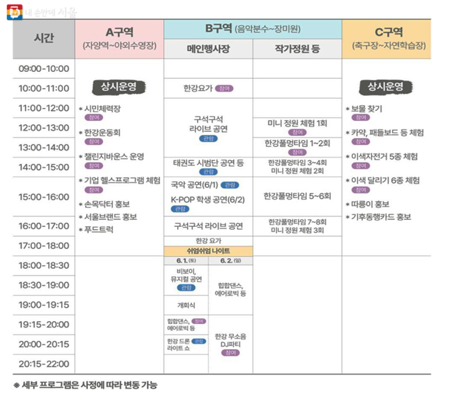 - 행사장소: 뚝섬한강공원(7호선 자양역 2, 3번 출구)