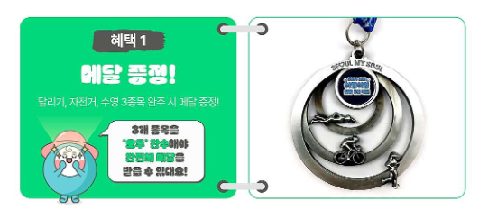 2. 종목별 완주시 메달 수여합니다. 3개의 메달을 이어붙이면 완전체가 되는 구성입니다.